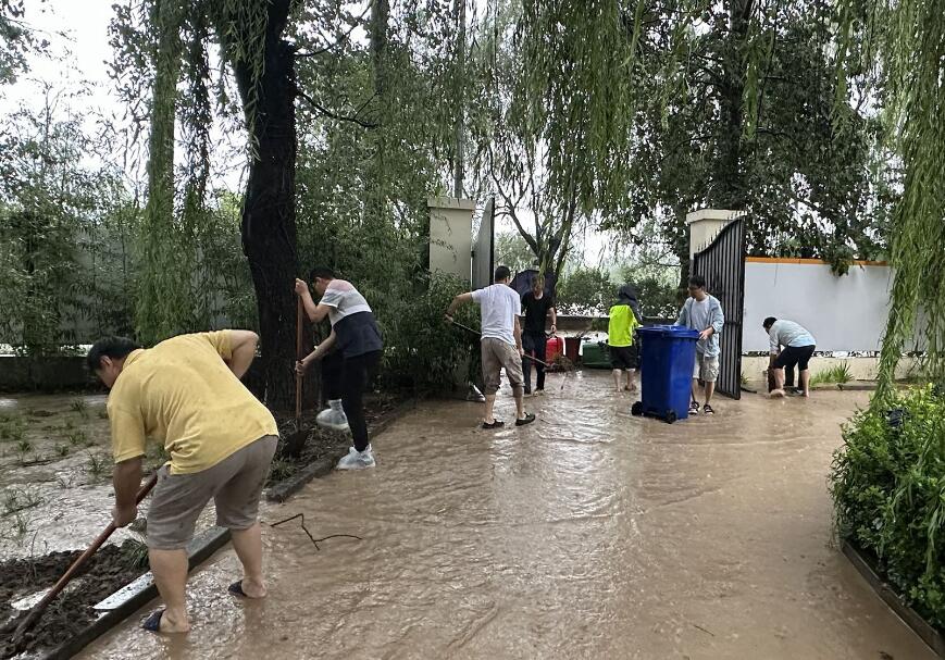 華潤置地北京悅府一期項目部組織近百人的應急搶險突擊隊,并安排2臺挖掘機等大型機械24小時應急值守,同步儲備相應救生衣、雨衣、雨鞋、鐵鍬、照明燈和防汛沙袋等防汛物資,確保在第一時間處置汛情。