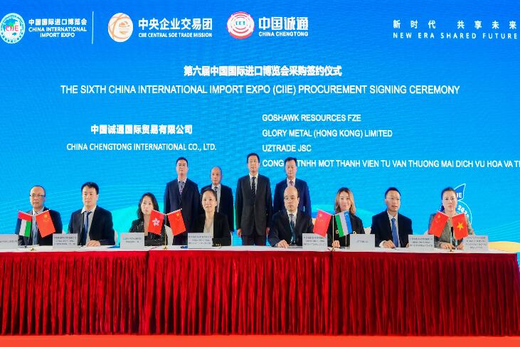11月7日,中國誠通4家所出資企業(yè)分別與來自阿聯(lián)酋、巴西等14個國家和地區(qū)的28家客商簽署采購協(xié)議。簽約金額合計達(dá)18.5億美元,較上屆進(jìn)博會增長12%,較首屆增長106%。采購產(chǎn)品既有鉻礦、錳礦、煤炭、紙漿、甲醇、棉紗等重要資源型產(chǎn)品,也有如電極、電池裝配設(shè)備等高新技術(shù)產(chǎn)品首次參加簽約。