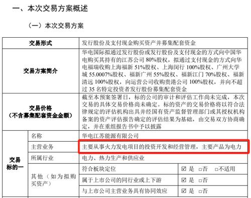 首先,華電國(guó)際擬通過(guò)發(fā)行股份或發(fā)行股份及支付現(xiàn)金的方式,向中國(guó)華電購(gòu)買其持有的華電江蘇能源有限公司(以下簡(jiǎn)稱江蘇公司)80%股權(quán)。