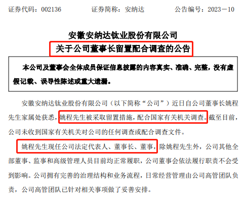 “截至本公告披露日,公司尚未知悉留置調(diào)查的進(jìn)展及結(jié)論,公司將嚴(yán)格按照有關(guān)法律、法規(guī)的規(guī)定與要求,密切關(guān)注上述事項(xiàng)的最新進(jìn)展情況,及時(shí)履行信息披露義務(wù)。”