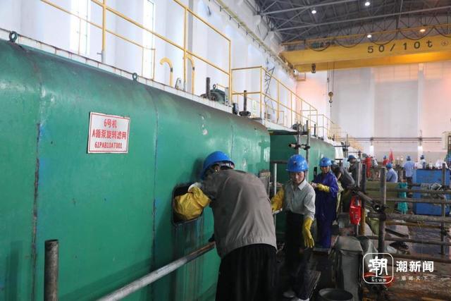 夜晚,反而留下的技術人員更多了,他們要在崗位上駐守,以防隨著潮汐變化,海蜇再一次出現井噴量,導致機器過載發(fā)生故障,他們要及時修理保障常規(guī)發(fā)電量。
