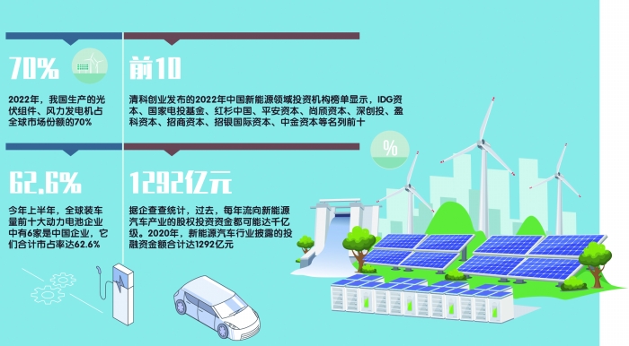 以上并非謬贊。據(jù)國(guó)家能源局及咨詢機(jī)構(gòu)SNE Research統(tǒng)計(jì)數(shù)據(jù)來看,我國(guó)生產(chǎn)的光伏組件、風(fēng)力發(fā)電機(jī)占全球市場(chǎng)份額的70%,新能源汽車動(dòng)力電池裝車量占世界的60%。在新能源領(lǐng)域,我國(guó)擔(dān)當(dāng)?shù)闷?ldquo;領(lǐng)先”之稱。