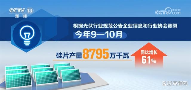 央視網消息:工業(yè)和信息化部12月13日發(fā)布當前全國光伏制造行業(yè)最新運行情況。數據顯示,今年9—10月,我國光伏制造業(yè)保持高位運行,硅料、硅片、電池、組件產量同比增長均超60%。