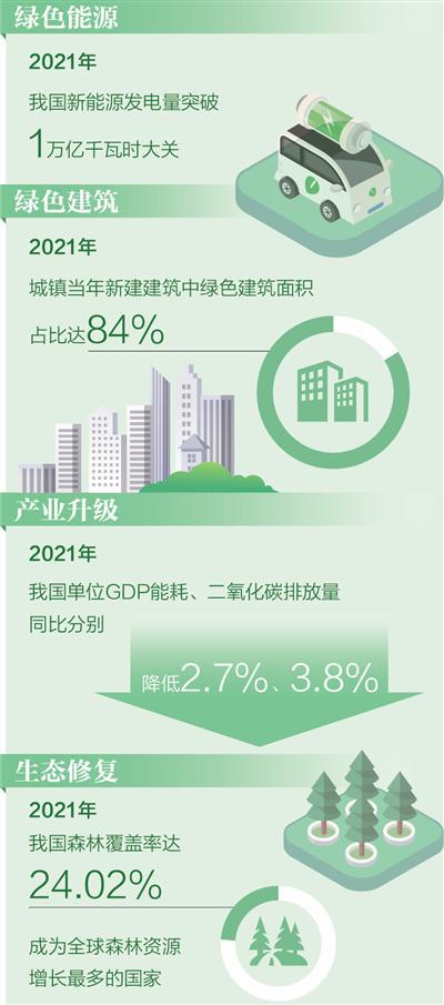 推進建筑、交通等領(lǐng)域低碳轉(zhuǎn)型。積極發(fā)展綠色建筑,推進既有建筑綠色低碳改造,2021年全國城鎮(zhèn)新建綠色建筑面積達到20多億平方米。加大力度推廣節(jié)能低碳交通工具,新能源汽車產(chǎn)銷量連續(xù)7年位居世界第一,保有量占全球一半。