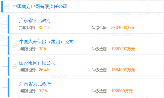 據(jù)媒體2021年12月報道,完善南方電網(wǎng)股權(quán)結(jié)構(gòu)推動高質(zhì)量發(fā)展專題會議在深圳召開,南方電網(wǎng)股權(quán)結(jié)構(gòu)調(diào)整為國務(wù)院國資委持股51%、廣東省人民政府持股25.57%、中國人壽保險(集團)公司持股21.3%、海南省人民政府持股2.13%。