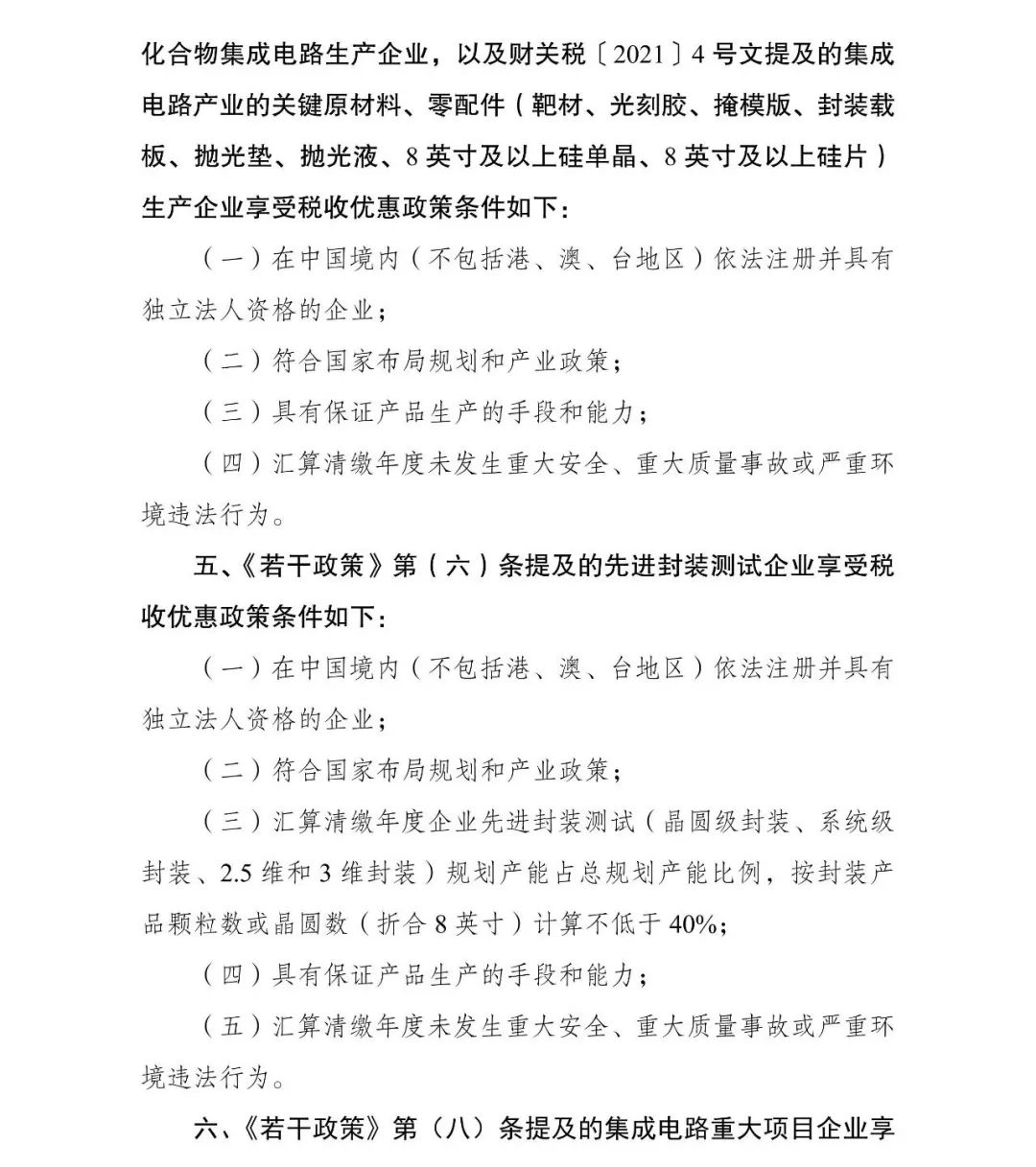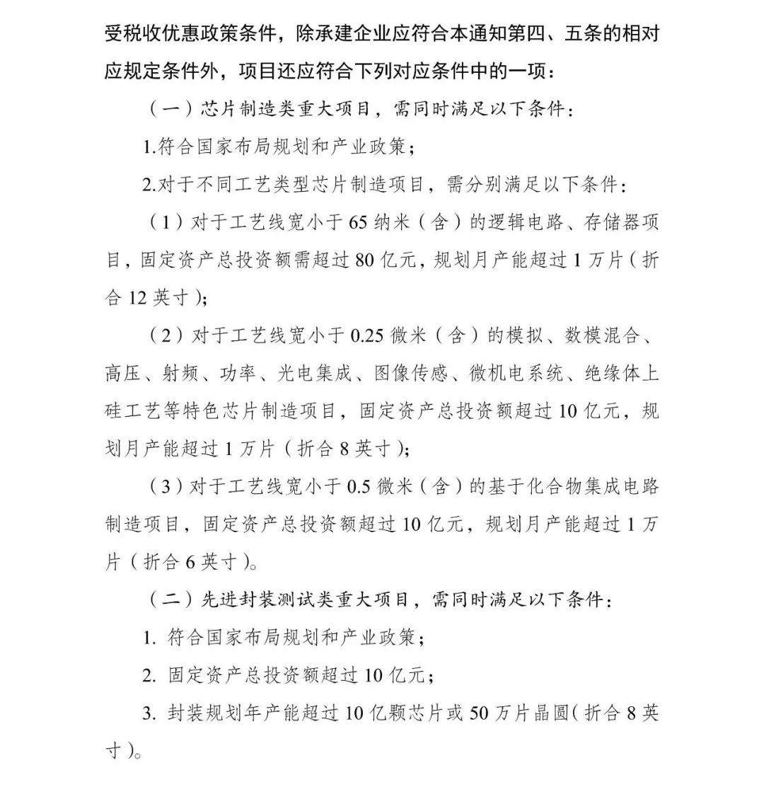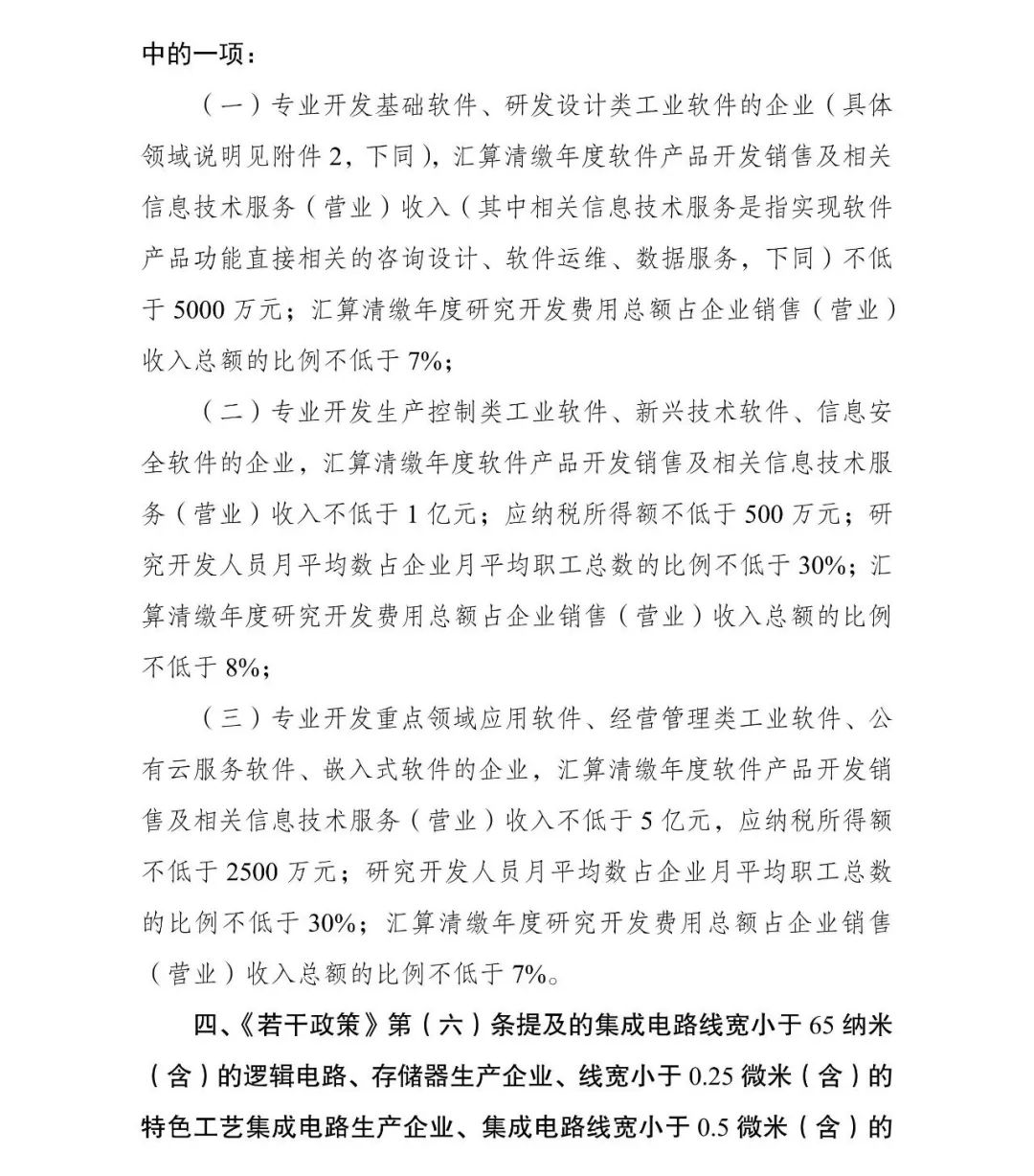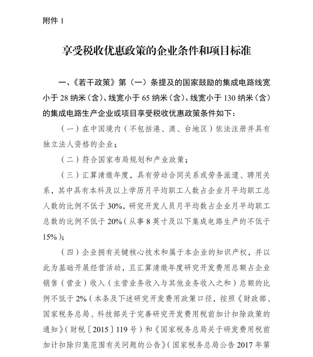 為促進我國集成電路產(chǎn)業(yè)持續(xù)健康發(fā)展,根據(jù)《國務院關(guān)于印發(fā)新時期促進集成電路產(chǎn)業(yè)和軟件產(chǎn)業(yè)高質(zhì)量發(fā)展若干政策的通知》(國發(fā)〔2020〕8號,以下簡稱《若干政策》)及其配套政策有關(guān)規(guī)定,經(jīng)研究,2023年享受稅收優(yōu)惠政策的集成電路企業(yè)或項目、軟件企業(yè)清單(以下簡稱“清單”)制定工作,延用2022年清單制定程序、享受稅收優(yōu)惠政策的企業(yè)條件和項目標準?,F(xiàn)就有關(guān)事項通知如下: