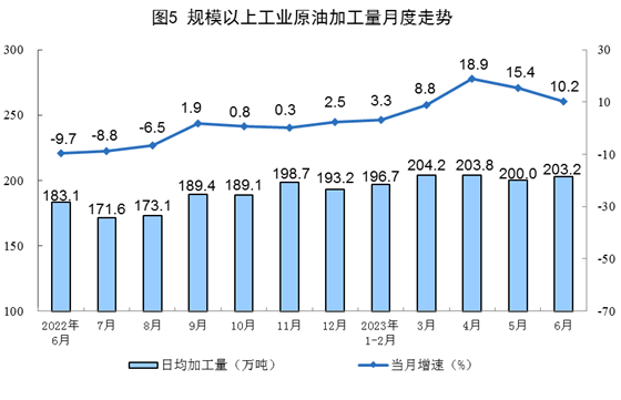原油生產(chǎn)保持平穩(wěn),進(jìn)口快速增長(zhǎng),原油加工較快增長(zhǎng)。上半年,生產(chǎn)原油10505萬(wàn)噸,同比增長(zhǎng)2.1%。進(jìn)口原油28208萬(wàn)噸,同比增長(zhǎng)11.7%。加工原油36358萬(wàn)噸,同比增長(zhǎng)9.9%。6月份,生產(chǎn)原油1752萬(wàn)噸,同比增長(zhǎng)1.9%。加工原油6095萬(wàn)噸,同比增長(zhǎng)10.2%。
