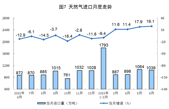 天然氣生產(chǎn)平穩(wěn)增長(zhǎng),進(jìn)口增速較快。上半年,生產(chǎn)天然氣1155億立方米,同比增長(zhǎng)5.4%。進(jìn)口天然氣5663萬(wàn)噸,同比增長(zhǎng)5.8%。6月份,生產(chǎn)天然氣183億立方米,同比增長(zhǎng)5.5%。