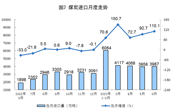 原煤生產(chǎn)穩(wěn)定增長(zhǎng),進(jìn)口高位增長(zhǎng)。上半年,生產(chǎn)原煤23.0億噸,同比增長(zhǎng)4.4%。進(jìn)口煤炭2.2億噸,同比增長(zhǎng)93.0%。6月份,生產(chǎn)原煤3.9億噸,同比增長(zhǎng)2.5%。