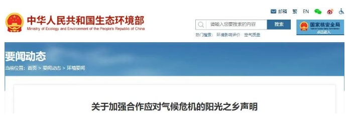 11月15日,生態(tài)環(huán)境部公布了中美關(guān)于加強(qiáng)合作應(yīng)對(duì)氣候危機(jī)的陽光之鄉(xiāng)聲明。