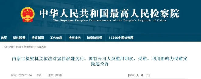 中國大唐集團(tuán)有限公司原黨組副書記、總經(jīng)理寇偉涉嫌貪污、國有公司人員濫用職權(quán)、受賄、利用影響力受賄一案,由國家監(jiān)察委員會調(diào)查終結(jié),移送檢察機(jī)關(guān)審查起訴。最高人民檢察院依法以涉嫌貪污罪、國有公司人員濫用職權(quán)罪、受賄罪、利用影響力受賄罪對寇偉作出逮捕決定,并指定由內(nèi)蒙古自治區(qū)人民檢察院興安盟分院審查起訴。近日,內(nèi)蒙古自治區(qū)人民檢察院興安盟分院已向內(nèi)蒙古自治區(qū)興安盟中級人民法院提起公訴。