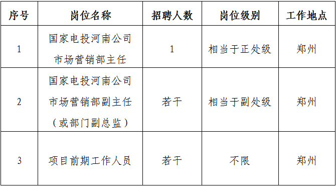 根據(jù)集團公司“2035一流戰(zhàn)略”,結合河南公司工作及項目前期業(yè)務需要,面向集團公司系統(tǒng)內外公開招聘人才,熱烈歡迎各類人才加盟。