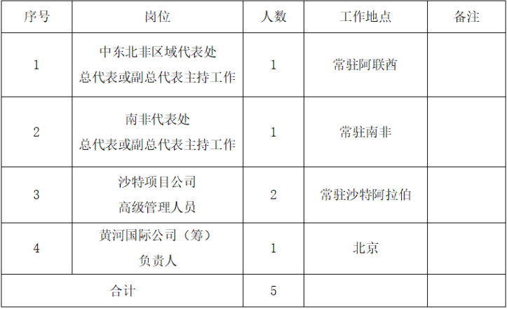 根據(jù)國家電投對境外代表處建設(shè)要求,以及黃河公司國際業(yè)務(wù)開展的需要,現(xiàn)面向國家電投系統(tǒng)內(nèi)、社會層面公開招聘黃河公司國際業(yè)務(wù)高級管理人員,具體事項如下: