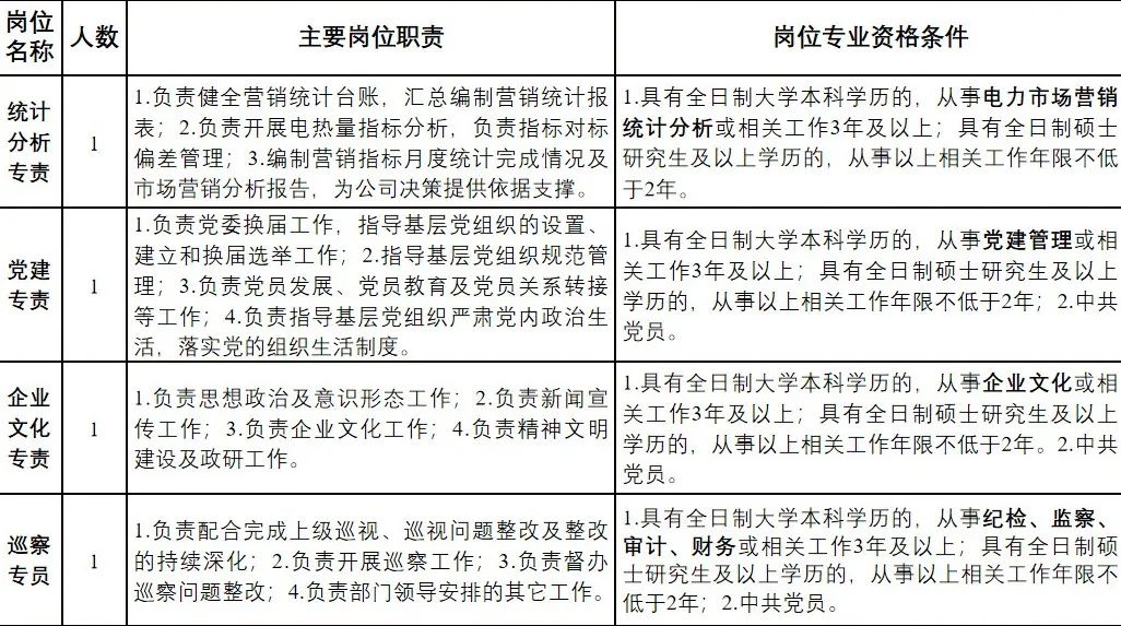 3. 從事與擬聘崗位相同或相近專(zhuān)業(yè)工作年限不低于3年;具有全日制碩士研究生及以上學(xué)歷的,專(zhuān)業(yè)工作年限不低于2年。