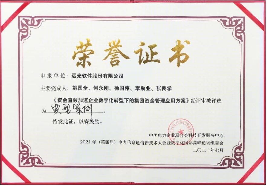 大會同期召開電力企業(yè)數(shù)字化轉(zhuǎn)型案例終審評審會,并在會上公布最終獲選的優(yōu)秀案例和典型案例名單。本次案例征集活動致力于協(xié)同推進(jìn)電力行業(yè)數(shù)字化轉(zhuǎn)型和數(shù)字產(chǎn)業(yè)化發(fā)展,展示企業(yè)數(shù)字化轉(zhuǎn)型背景下的電力行業(yè)最新成果。遠(yuǎn)光軟件自主研發(fā)的“資金直效加速企業(yè)數(shù)字化轉(zhuǎn)型下的集團(tuán)資金管理應(yīng)用方案”、協(xié)助支持的客戶項目“智慧財務(wù)經(jīng)營大數(shù)據(jù)分析應(yīng)用”、“電力智慧共享財務(wù)管理平臺”,憑借新技術(shù)應(yīng)用和顯著的應(yīng)用價值,皆入選為“典型案例”。