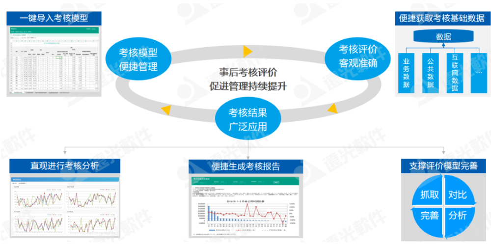 遠光全面預(yù)算管理解決方案支持一鍵導入預(yù)算考核模型,通過設(shè)置取數(shù)公式,自動獲取各單位的考核基礎(chǔ)數(shù)據(jù),通過模型內(nèi)置的考核計算方法得到各單位各項考核指標的得分和排名數(shù)據(jù),實現(xiàn)整個評分過程的自動處理。