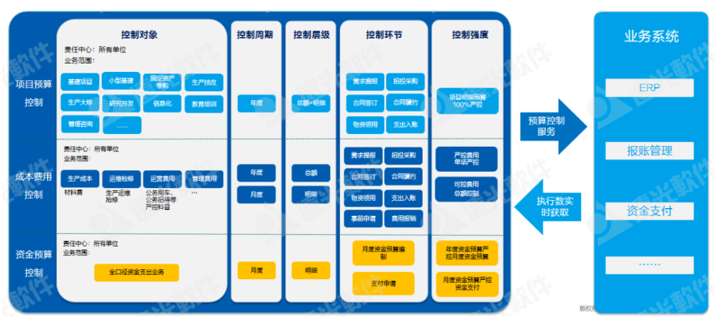 通過建立全方位、全流程、多周期、預(yù)算資金雙流雙控、預(yù)警監(jiān)控等控制體系,按照“無預(yù)算不開支、無預(yù)算不投資”原則,嚴控預(yù)算外經(jīng)濟行為,實現(xiàn)對財務(wù)資源使用過程的及時監(jiān)控,確保財務(wù)資源的使用安全,提升企業(yè)以財務(wù)管理為驅(qū)動的經(jīng)營管理能力的提升,加強集團對下屬單位的風險管控。