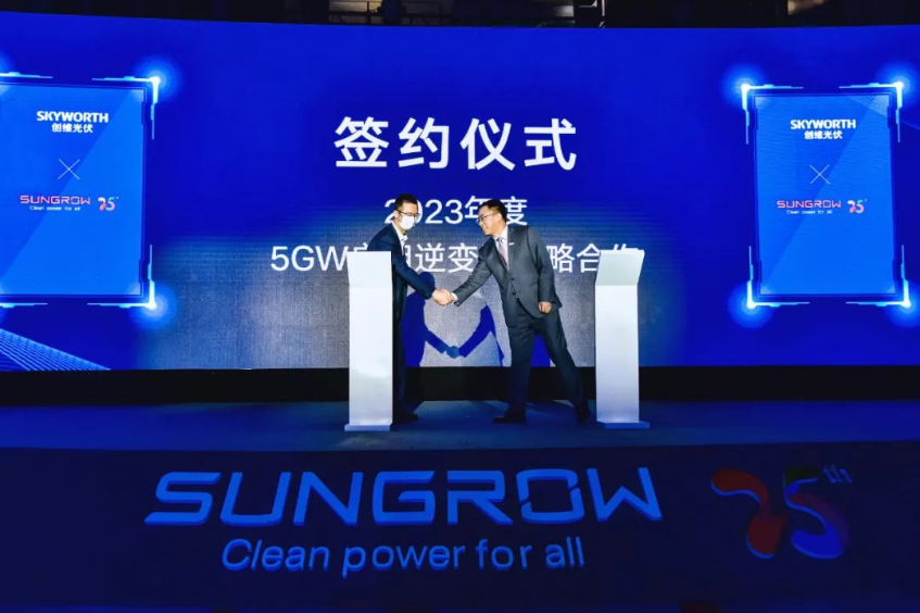 創(chuàng)維光伏副總經(jīng)理肖振表示:“陽光電源作為光伏行業(yè)龍頭企業(yè),產(chǎn)品性能卓越,服務(wù)體系高效。創(chuàng)維光伏很高興與陽光電源簽訂5GW戶用逆變器戰(zhàn)略合作,希望和陽光電源攜手共進(jìn),優(yōu)勢(shì)互補(bǔ),把戶用光伏市場(chǎng)做大做強(qiáng)!”