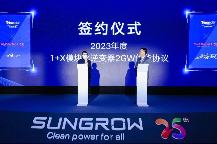 天合智慧能源許凌女士在簽約現(xiàn)場(chǎng)表示:“與陽光電源一樣,天合光能今年也25歲了,雙方一起在光伏行業(yè)砥礪前行,都取得了長(zhǎng)足的發(fā)展。多年來,我們見證陽光電源始終保持著蓬勃的創(chuàng)新活力和高質(zhì)量的產(chǎn)品輸出。這次與陽光電源簽訂了2GW的‘1+X’模塊化逆變器供貨協(xié)議,期待用陽光的逆變新品,打造出更好的光伏電站。”