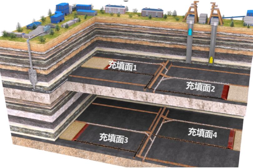 四是研究攻關多面并采的負碳高效充填開采技術(shù)與工藝,破解礦山充填開采影響煤炭產(chǎn)能的難題。攻關新型充填開采技術(shù),創(chuàng)新負碳高效膠結(jié)高孔隙充填體工藝方法,來提高單面充填開采產(chǎn)能(100~500萬t/a)。在此基礎上,構(gòu)建實施2~3個工作面同時并采的技術(shù)方案思路,就可實現(xiàn)千萬噸級礦井負碳高效充填開采。同時探索攻關單層采區(qū)多面并采和立體空間多面并采的負碳高效開采工藝和相應的負碳高效充填技術(shù)及裝備,突破充填開采影響煤炭生產(chǎn)效率的瓶頸,可望實現(xiàn)千萬噸級以上產(chǎn)能的礦山負碳高效充填開采。