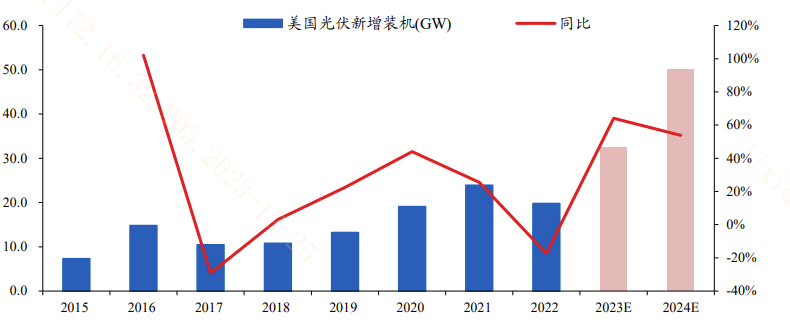 圖:2024年美國光伏裝機可達45-55GW,同比增長38%-69% (信息來源:華創(chuàng)證券)