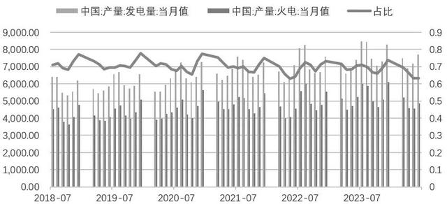 圖為全國(guó)火電發(fā)電量及其占比情況
