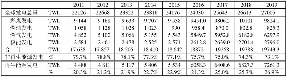 2011~2019年全球電力結(jié)構(gòu)匯總