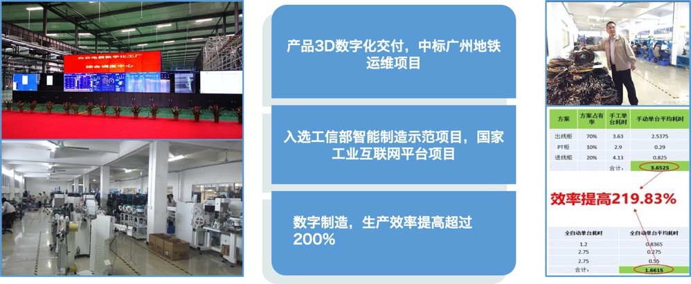 【白云電器】白云和利馳從2000年開始合作,最開始使用的利馳SuperWORKS軟件,白云的數(shù)字化工廠建設(shè)投資非常大,幾個(gè)億的投資,其中最關(guān)鍵的兩個(gè)工序,線束和母排都采用利馳的解決方案。線束的下線效率、接線的效率提高了219%。更重要的是白云通過和利馳的合作,有了三維模型,有了柜體的三維仿真數(shù)據(jù),廣州地鐵有個(gè)配電設(shè)備的維護(hù)平臺,地鐵設(shè)備維護(hù)必須基于BIM模型,白云的電氣設(shè)備三維模型可以輕松轉(zhuǎn)化為BIM模型,在這方面利馳給白云做了大量的支持,基于此白云就可以承接廣州地鐵售后維護(hù)的項(xiàng)目。白云電器通過做數(shù)字化已經(jīng)實(shí)現(xiàn)了制造競爭力很強(qiáng),運(yùn)維服務(wù)競爭力更強(qiáng)。