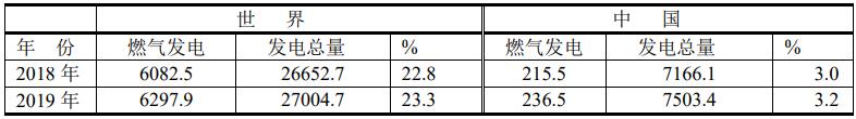 世界與中國(guó)燃?xì)獍l(fā)電的的比較(單位:TWh)