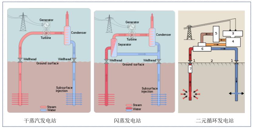 地?zé)岚l(fā)電站與其他蒸汽輪機熱力發(fā)電站相似,由燃料源(在地?zé)岬那闆r下是地球的核心)產(chǎn)生的熱量用于加熱水或其他工作流體。然后,使用工作流體來轉(zhuǎn)動發(fā)電機的渦輪,從而產(chǎn)生電力。然后,流體被冷卻并返回到熱源。地?zé)岚l(fā)電站分為三種類型:干蒸汽發(fā)電站、閃蒸電站和二元循環(huán)發(fā)電站。