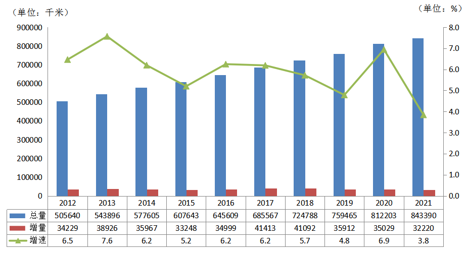 2021年,全國(guó)電網(wǎng)220千伏及以上變電設(shè)備容量共49.4億千伏安,同比增長(zhǎng)5.0%;220千伏及以上輸電線路回路長(zhǎng)度共84萬(wàn)千米,同比增長(zhǎng)3.8%。