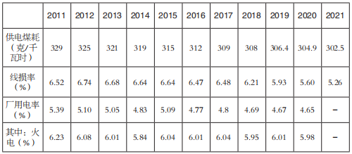據(jù)國(guó)家能源局?jǐn)?shù)據(jù),2021年全國(guó)供電標(biāo)準(zhǔn)煤耗302.5克/千瓦時(shí),同比再降2.4克/千瓦時(shí),較2011年下降了26.5克/千瓦時(shí)。