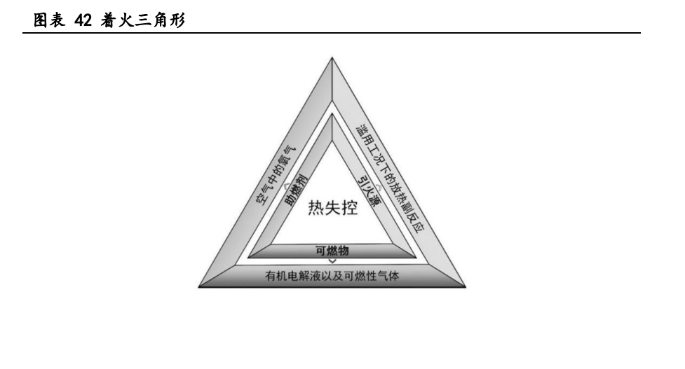 在電池系統(tǒng)熱失控蔓延無法遏制時,消防滅火措施需要阻斷"著火三角形”三個要 素中的一個或多個,來達到保證火災安全的目的。合理的熱失控蔓延抑制措施需要考 慮措施的可行性。