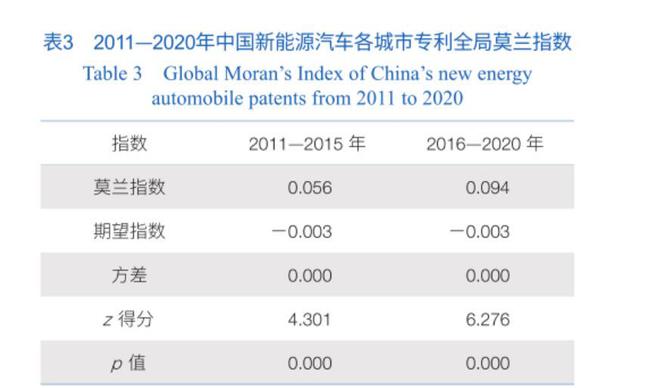 因此,由上述分析可知,新能源汽車企業(yè)是當前中國進行新能源汽車創(chuàng)新活動的主體。但一方面中國新能源汽車產業(yè)發(fā)展仍處于初期,并未形成相對健全的產業(yè)體系;另一方面則是新能源汽車的研發(fā)有較高的技術門檻,企業(yè)間的合作難以開展。中國新能源汽車產業(yè)創(chuàng)新網絡的結網比例及其下降趨勢也表示,大部分新能源汽車的研發(fā)基本由企業(yè)獨立完成。這使得中國新能源汽車在2011—2020年并未產生顯著的溢出效應,僅在長江三角洲城市群地區(qū)有一定的創(chuàng)新活動的集聚現象。