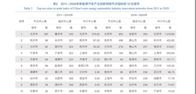新能源汽車產業(yè)創(chuàng)新網絡節(jié)點特征