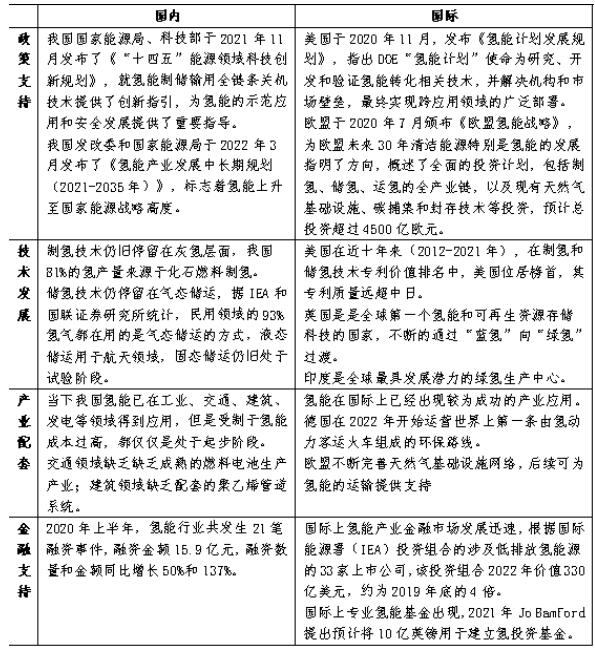表2 國內(nèi)外氫能產(chǎn)業(yè)發(fā)展差異
