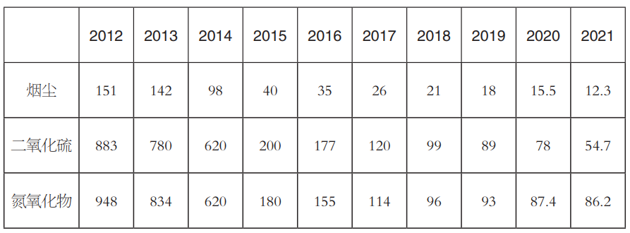 表10 2012—2021年電力行業(yè)排放總量情況(單位:萬噸)