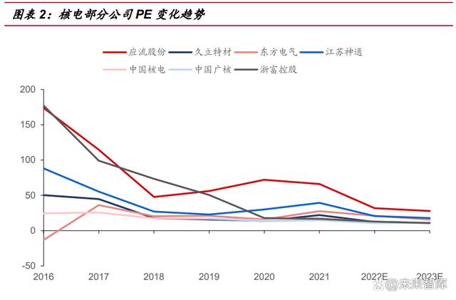 人和:目前核電板塊各公司基金持倉仍處于底部,公司估值也處于歷史低點。 我們選取核電板塊部分公司觀察基金持倉比例,發(fā)現(xiàn)經(jīng)過 2019 年之后的集 體上升后,2021 年至今呈現(xiàn)下降趨勢,當(dāng)前處于歷史低點。從核電板塊公 司估值角度,近年來一直處于緩慢下降狀態(tài),目前正處于歷史低點。我們認(rèn) 為在上述“天時地利人和”因素加持下,核電板塊有較大向上空間。