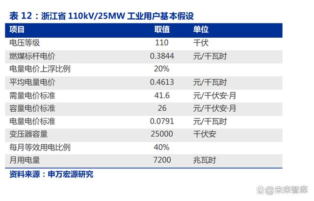 這條政策主要目的是推動工商業(yè)企業(yè)進行最高負荷管理,在保持總用電規(guī)模的前提下, 盡量降低最高用電負荷即可享受相應的優(yōu)惠。我們以前文所述浙江 5MW/10MWh 工商業(yè) 儲能為例,假設公司配儲規(guī)模為變壓器容量的 20%,即變壓器容量為 25MW,假設接入 110kV 電網(wǎng),每月變壓器等效利用率為 40%,不配儲的情況下最高用電負荷為變壓器容 量的 70%,在配儲的情況下最多可以將最高用電負荷降低至變壓器容量的 50%。