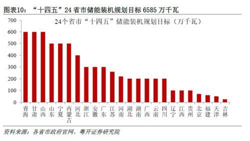裝機規(guī)劃目標躍升,新型儲能進入發(fā)展“快車道”。進入“十四五”以來,國家及地方密集發(fā)布儲能政策。2021年7月,國家發(fā)改委、國家能源局發(fā)布的《關于加快推動新型儲能發(fā)展的指導意見》指出,到2025年實現(xiàn)新型儲能裝機3000萬千瓦以上。2022年以來,廣東、青海、甘肅等26省市提出“十四五”新型儲能裝機目標,合計規(guī)劃裝機6585萬千瓦,遠超3000萬千瓦的裝機目標,新型儲能已進入快速增長的發(fā)展階段。