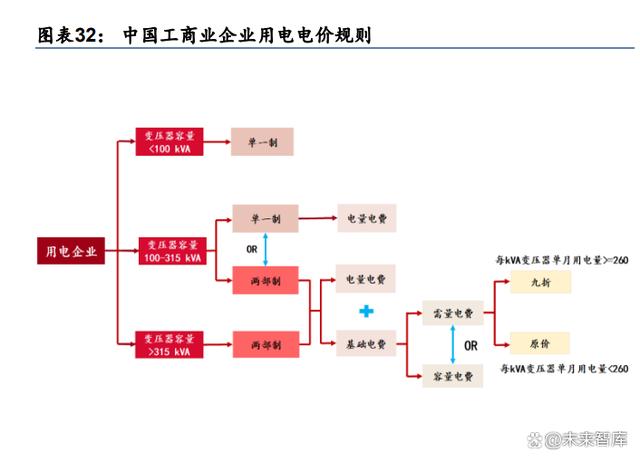 第三監(jiān)管周期電價(jià)改革鼓勵(lì)用戶配儲(chǔ),優(yōu)化最大需量降低基本電費(fèi)。2023 年 5 月 15 日, 國家發(fā)改委印發(fā)《國家發(fā)展改革委關(guān)于第三監(jiān)管周期省級(jí)電網(wǎng)輸配電價(jià)及有關(guān)事項(xiàng)的通知》, 輸配電價(jià)的改革利于引導(dǎo)電價(jià)機(jī)制合理化,倒逼工商業(yè)用戶進(jìn)行需量管理:(1)明確單一 制和兩部制電價(jià)執(zhí)行范圍:①用電容量在 100 千伏安及以下的,執(zhí)行單一制電價(jià);②100 千伏安至 315 千伏安之間的,可選擇執(zhí)行單一制或兩部制電價(jià);③315 千伏安及以上的, 執(zhí)行兩部制電價(jià),現(xiàn)執(zhí)行單一制電價(jià)的用戶可選擇執(zhí)行單一制電價(jià)或兩部制電價(jià)。(2)建 立負(fù)荷率激勵(lì)約束機(jī)制:選擇執(zhí)行需量電價(jià)計(jì)費(fèi)方式的兩部制用戶,每月每千伏安用電量 達(dá)到 260 千瓦時(shí)及以上的,當(dāng)月需量電價(jià)按核定標(biāo)準(zhǔn) 90%執(zhí)行。需量電價(jià)的優(yōu)惠有助于引 導(dǎo)用戶根據(jù)自身負(fù)荷合理報(bào)裝容量,提升變壓器利用率。